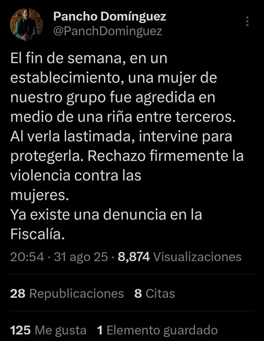 Después de que se hiciera viral un video donde se ve al ex gobernador Francisco Domínguez inmiscuido en una riña, en un bar, hoy sale a aclarar que lo ocurrido fue por una agresión a una compañera de grupo, por lo que salió a defenderla. Aclara además que ya hay una denuncia puesta en la fiscalía.