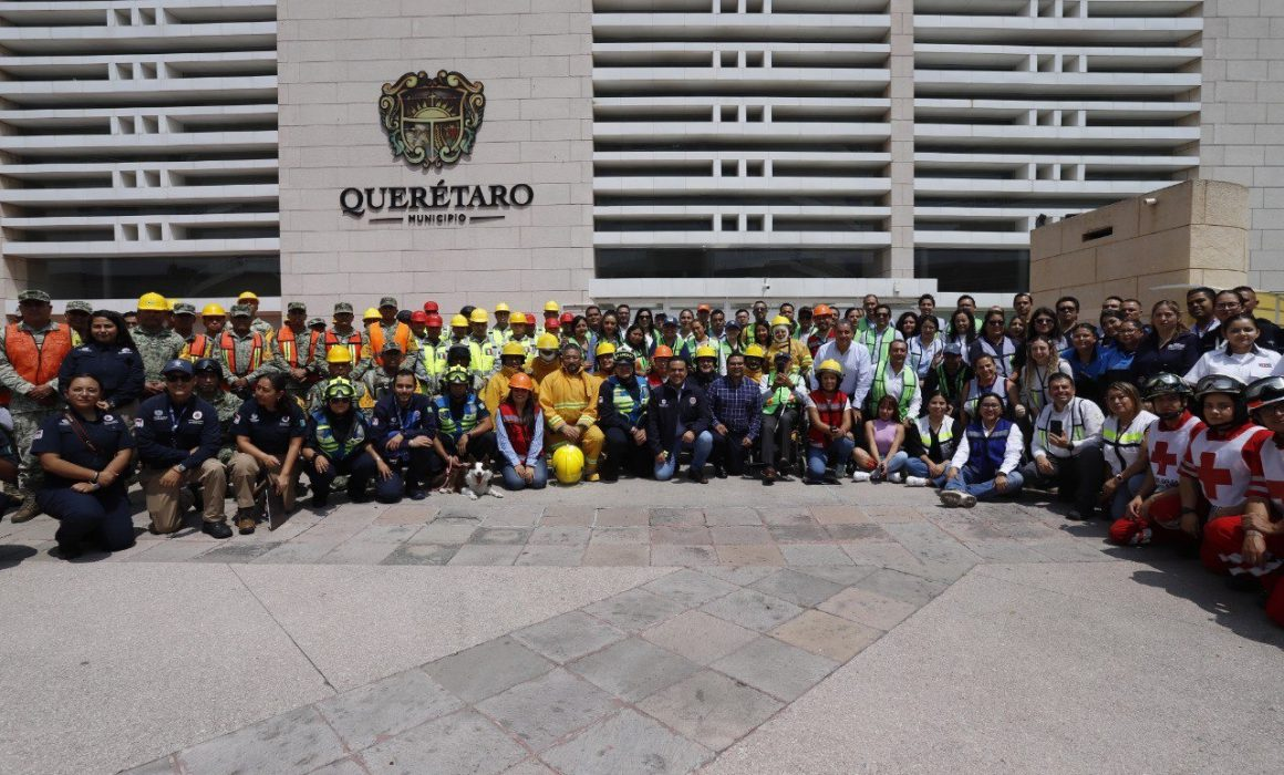 En el marco del Segundo Simulacro Nacional 2025, el Municipio de Querétaro realizó la evacuación de 950 personas del Centro Cívico a las 12:00 horas, luego del sonido de la alarma sísmica.