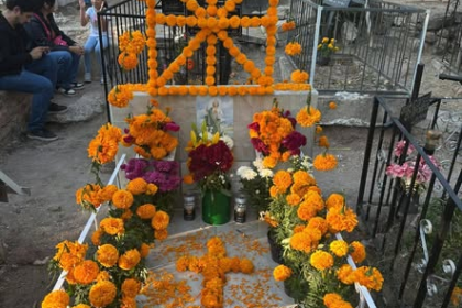 Cementerio lleno de flores y velas iluminando el camino de los seres queridos que han partido, tumbas un espacio lleno de amor y recuerdos, dónde se honra la memoria de aquellos que se fueron. Ofrend...