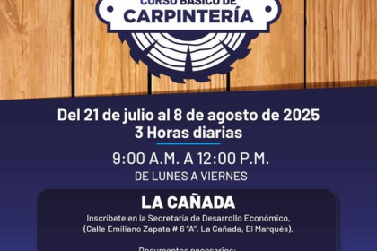 La Secretaría de Desarrollo Económico te invita a los cursos de Básico de Carpintería del 21 de julio al 8 de agosto, de 9 a 12 horas, en La Cañada y el e Curso de Aplicación de Uñas del 21 de ...